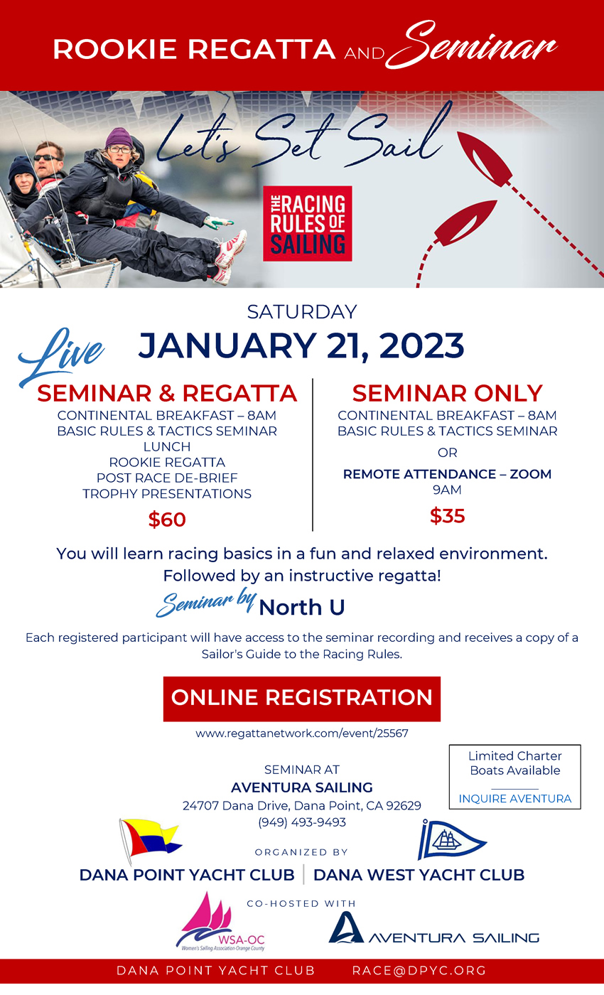 2023 Rookie Regatta – January 21, 2023 by The WebMaster | Jan 2, 2023 | All Articles, Racing | 0 comments Join sail racers new and seasoned for a unique educational opportunity! Submit a CommentYour email address will not be published. Required fields are marked *Comment * Name Email Website Δ
