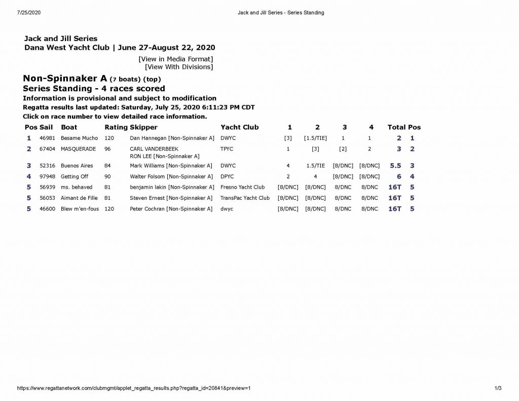 Jack & Jill Race Results & Photos for #1 – #4 by The WebMaster | Jul 31, 2020 | Commodore Jack & Jill Race #1 & #2 – June 27, 2020